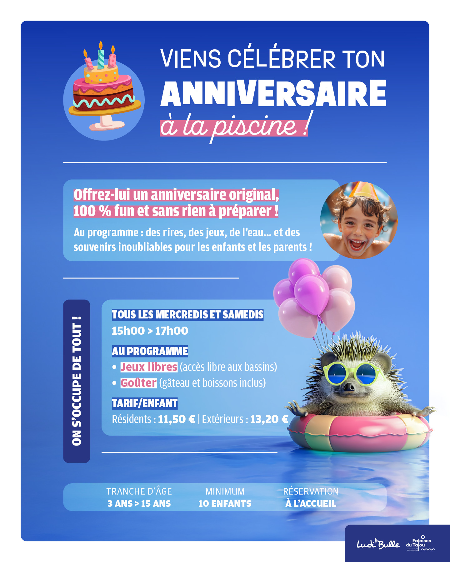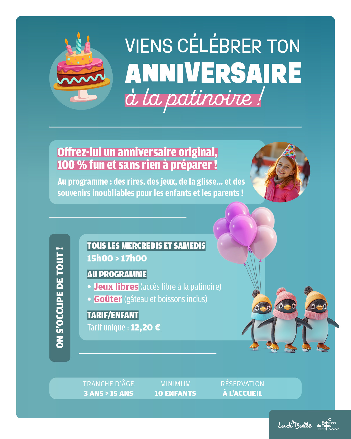 Pour un anniversaire inoubliable entouré de tes amis ! Nous nous occupons de tout pour un moment festif et joyeux. Renseignements et réservation à l’accueil de l’établissement.