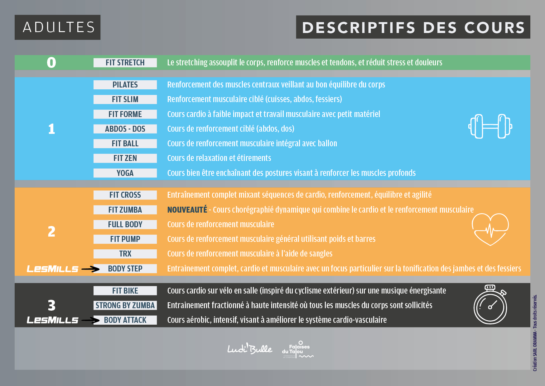 La Fit Gym est un cours de renforcement musculaire général à faible intensité.