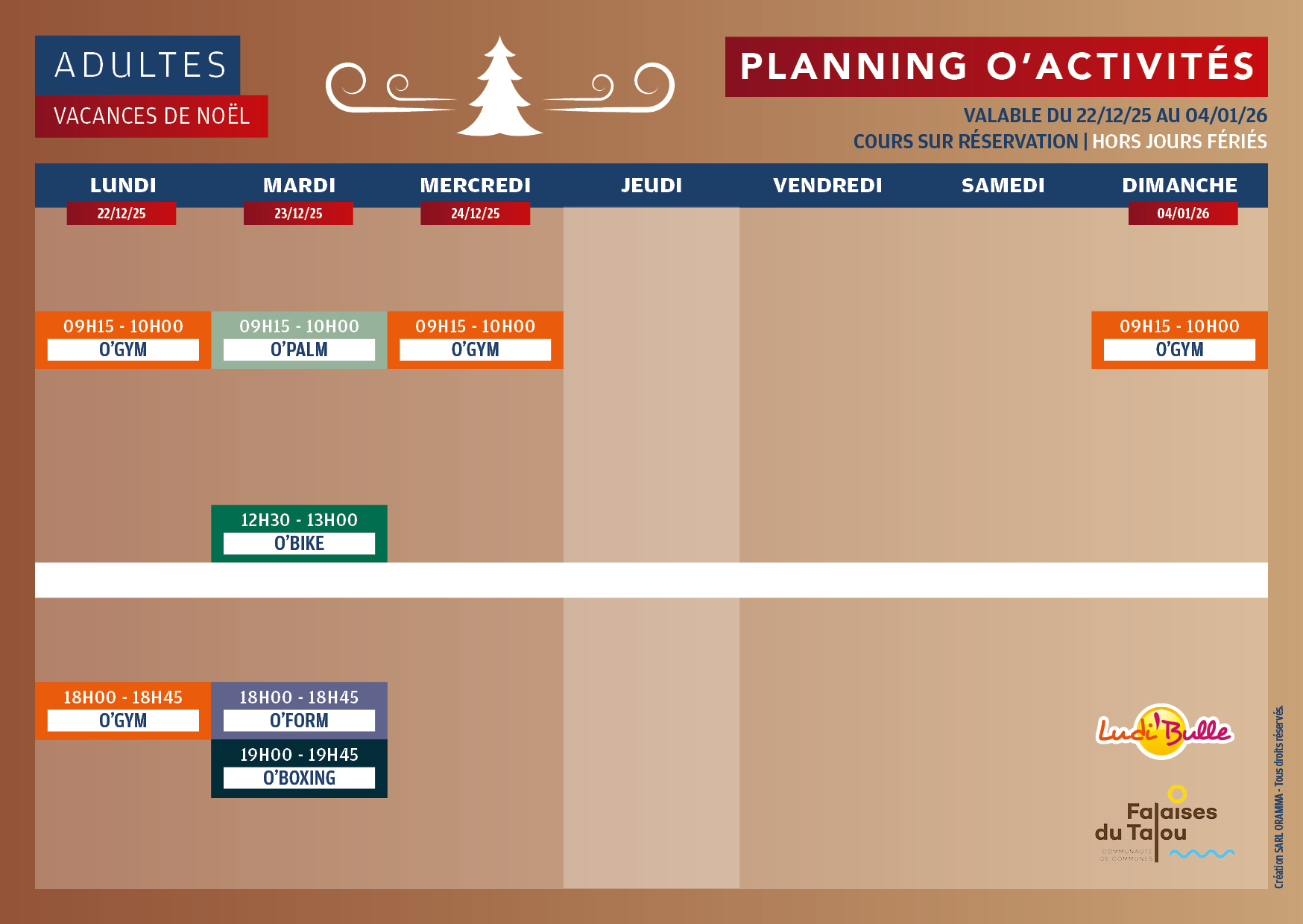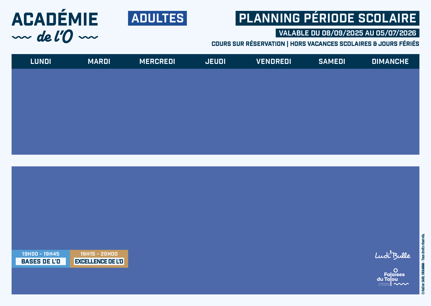 Lundi : 9h00 – 13h15 / 16h30 – 20h00